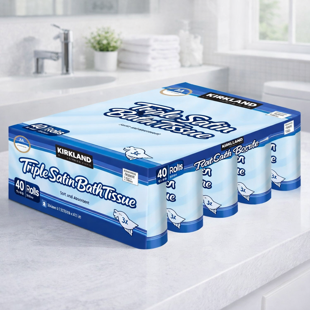 Kirkland 40 Toilet Rolls 3 Ply Triple Satin Tissue 240 Sheets Per Roll