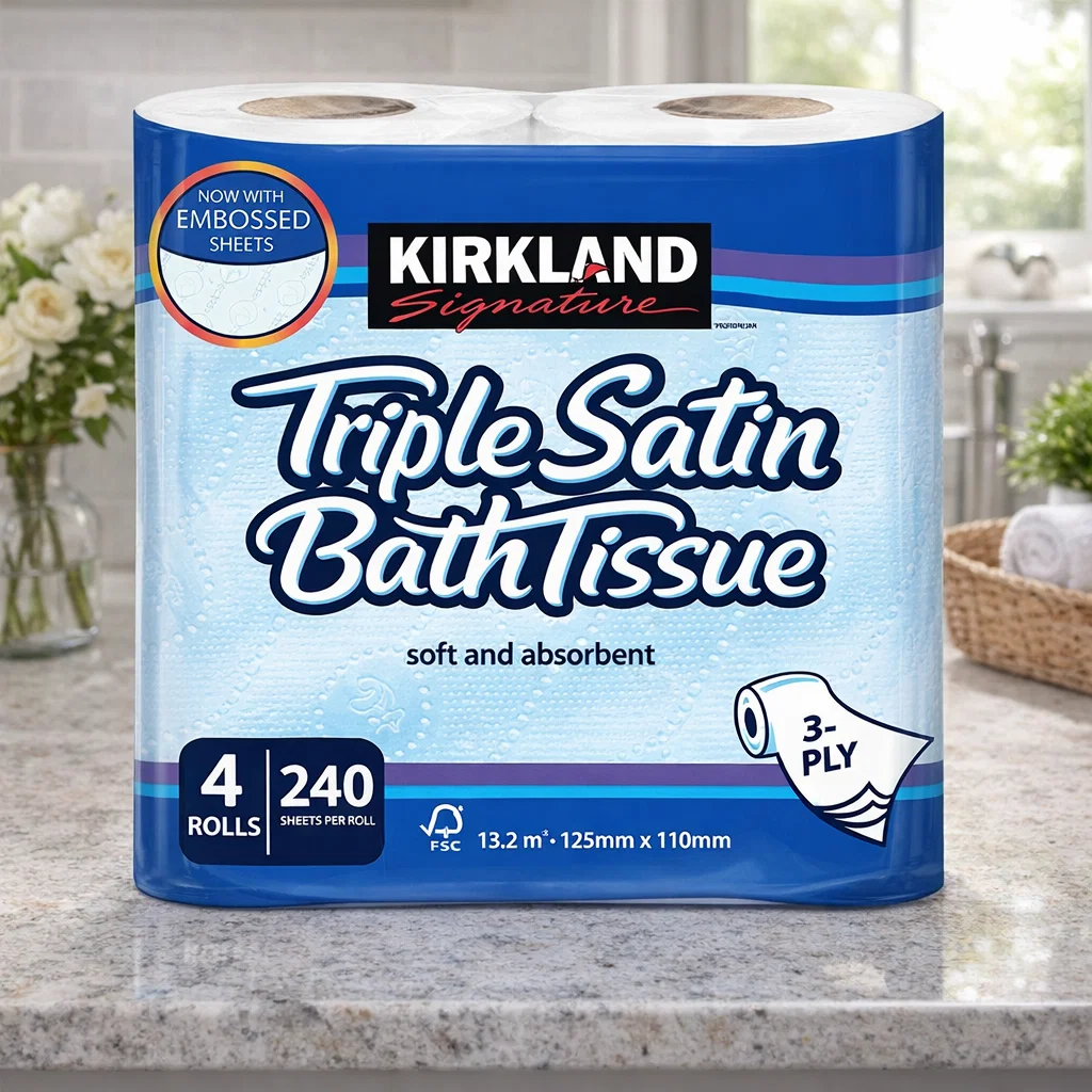 Home Household Kirkland 40 Toilet Rolls 3 Ply Triple Satin Tissue 240 Sheets Per Roll